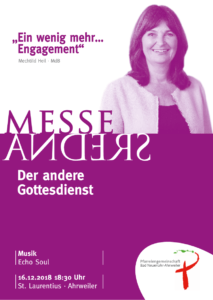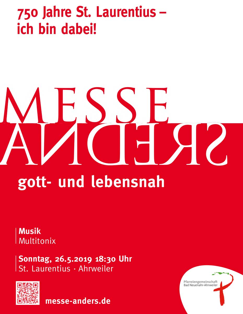Messe Anders ist ein Projekt in der Pfarrei Bad Neuenahr-Ahrweiler. Seit 2018 bietet ein Team von Haupt- und Ehrenamtlichen diese Form der kirchlichen Feier in unregelmäßigen Abständen an.